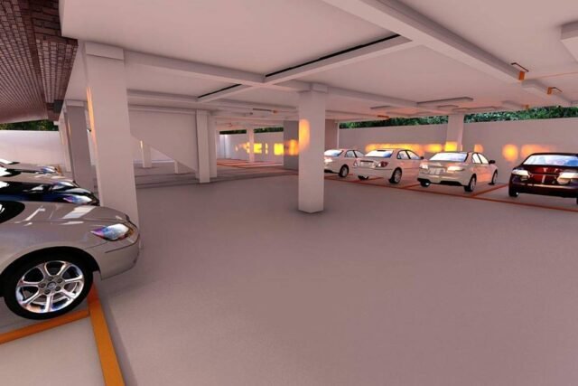 Private parking on the first level