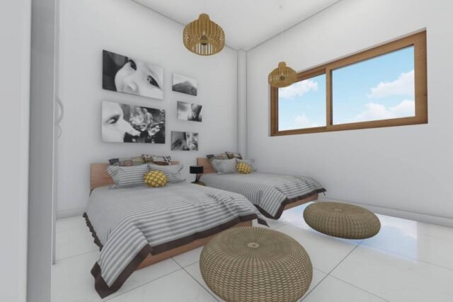 The project consists of 20 exclusive apartments, each offering 100 m² of well-designed living space, with a modern open-concept layout that maximizes natural light, comfort, and functionality. The units feature two spacious bedrooms and two full bathrooms, making them ideal for both personal use and high-demand vacation rentals.